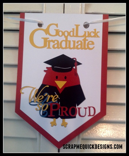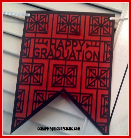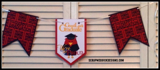 I then created (2) Happy Graduation Banner pieces #M2111F9 to use on either side of the Center Banner piece. Its looks really adorable all put together. I used curling ribbon to hang it.