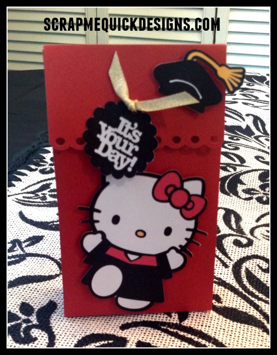 And last but not least…how about an adorable MINI GIFT BAG you can make yourself in a hurry. Use the gift bag box #M4754E in Graduation Category in Design Space and add a Print then Cut of the Hello Kitty Grad #M46270for some extra fun ! The bag cuts out on a 12X12 sheet of paper and would be perfect for small gifts or gift card. Or maybe even as a treat bag…might be fun to fill with the Reese’s Graduation Cap Treats, right ?