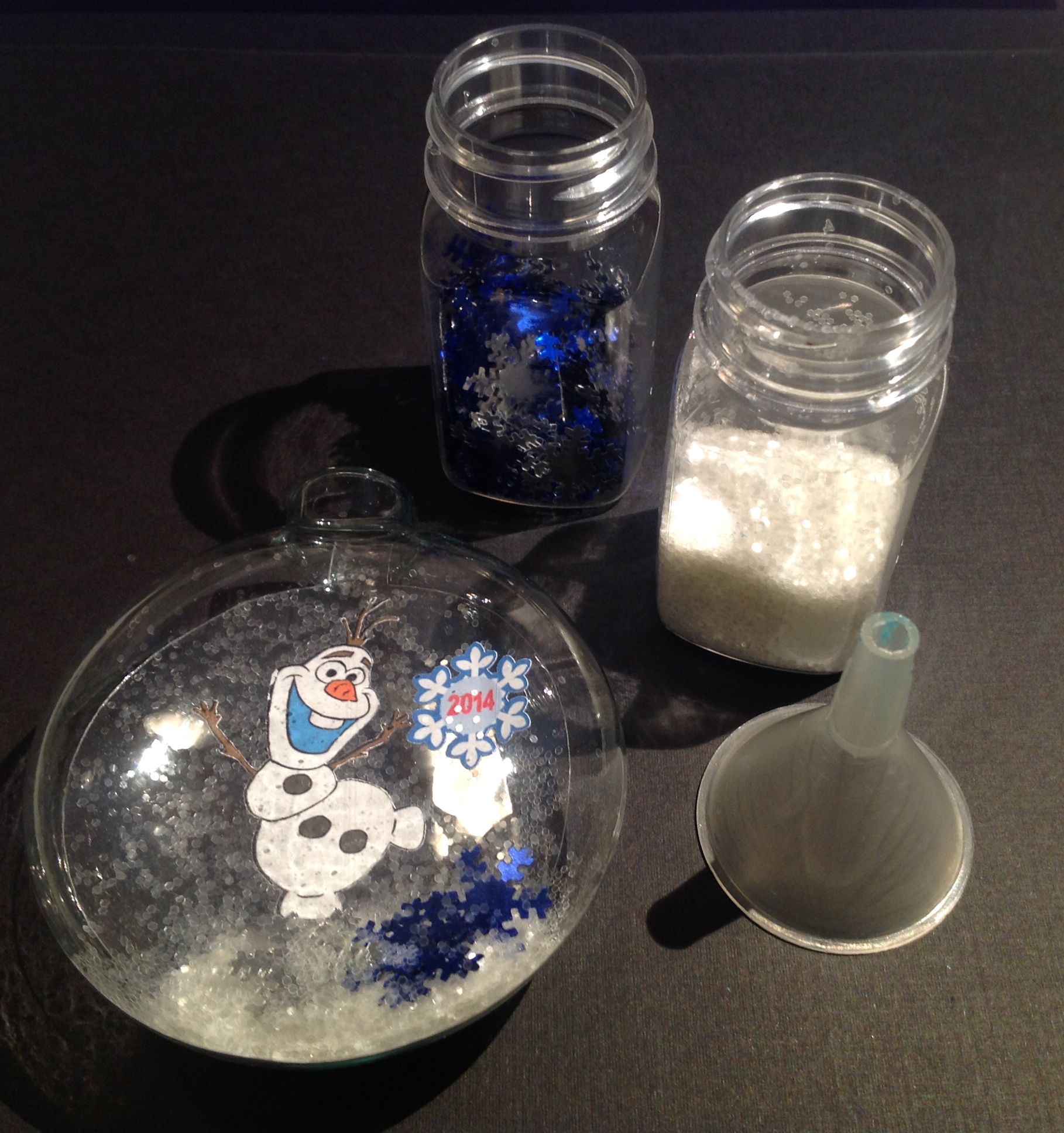9. Add FILLER. This is optional. But I added some glitter and some snowflake sequins to the inside for added fun. Note: I used a small funnel to help get the glitter in without making a big mess.