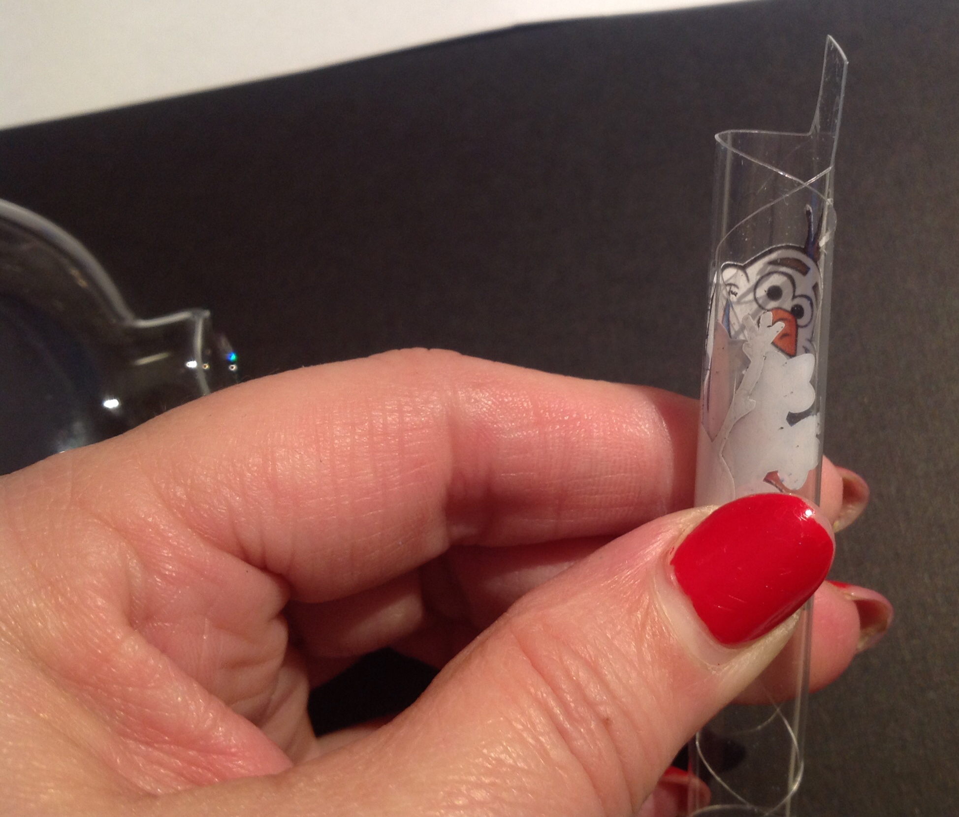 7. Gently roll up the plastic insert and place in the clear ornament.