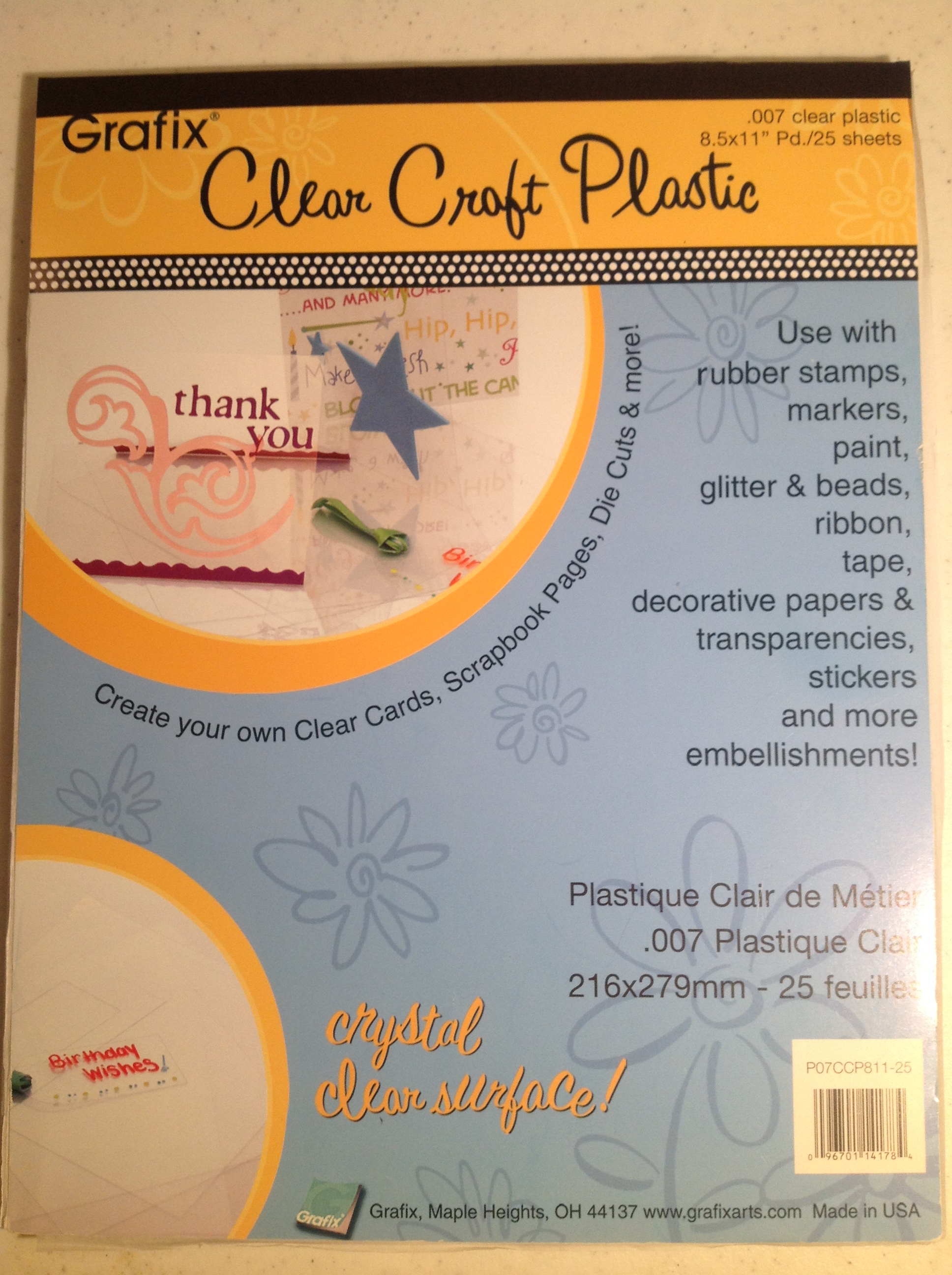 2. Next you need some clear plastic for the insert. You can use Craft Plastic like I did which I purchased in a pack at craft store. Or thin acetate sheets or even a clear transparency. Basically it needs to be clear plastic that is thin enough you can roll it up easily without it creasing when you go to insert in ornament later.