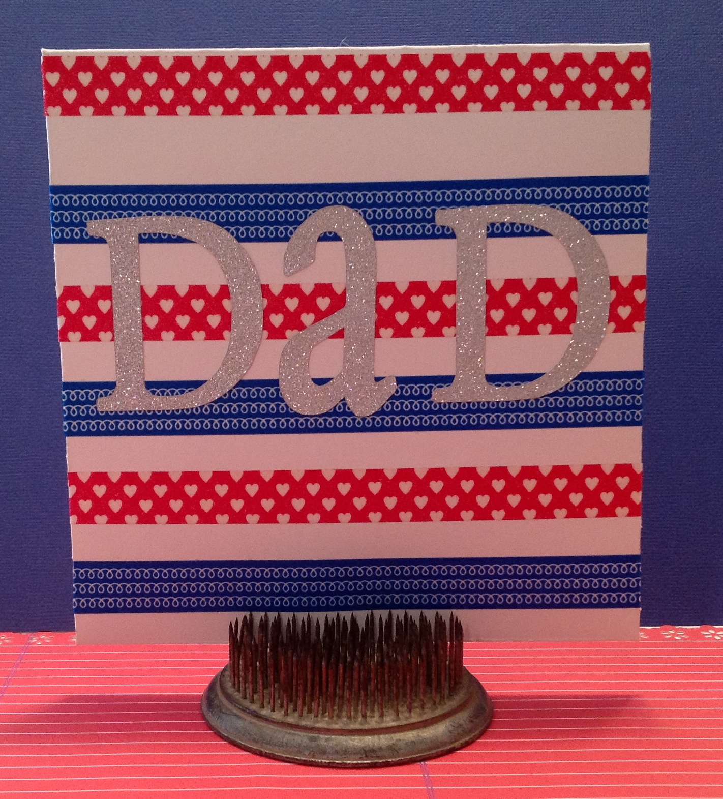 Next, I used my Silhouette Cameo and cut out the letters to spell Dad out of glitter paper and adhered to the front.