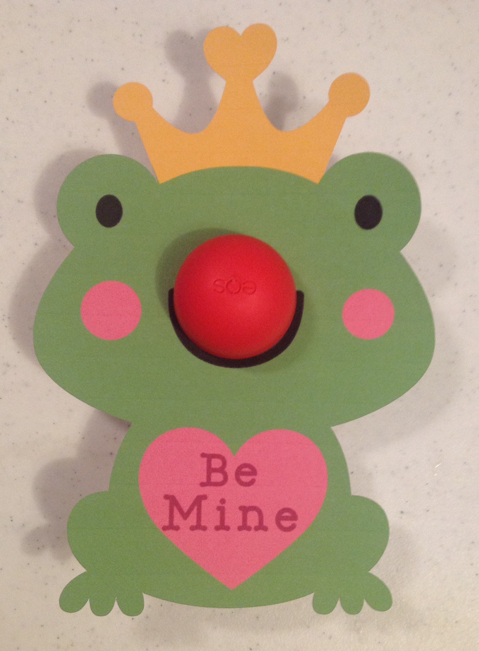 This an adorable Frog Prince from the Create A Critter TwoCricut Cartridge . To make it easier, I just used the Print Then Cut feature in Cricut Explore to print these out and cut. So I didnt even have to do all the paper piecing myself. I printed them out on 110 lb white cardstock (Georgia Pacific brand for Walmart) so that it stiff enough to support the weight of the lip balm.